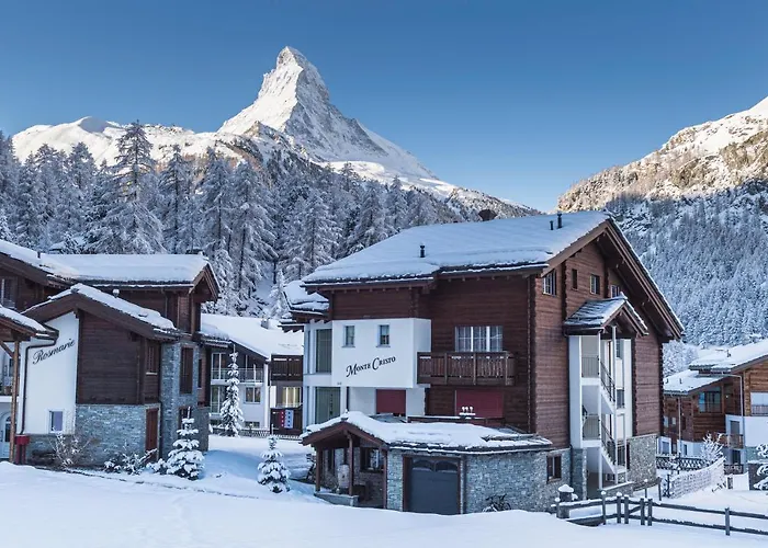 ゴルフコ-ス,サンテラスとテラスのあるモンテ クリストアパ-トはツェルマットにある宿泊施設を提供しています. 顧客がわずか徒歩で行けるのはマッタ-ホルンです.
